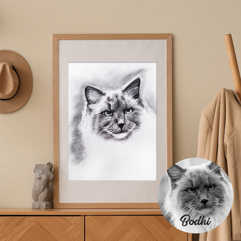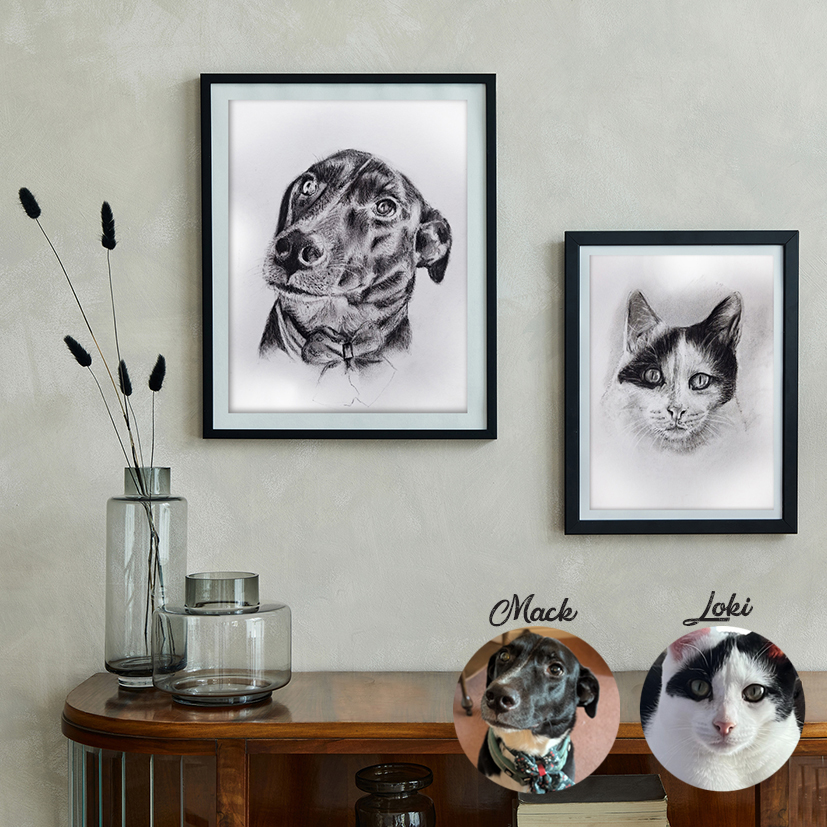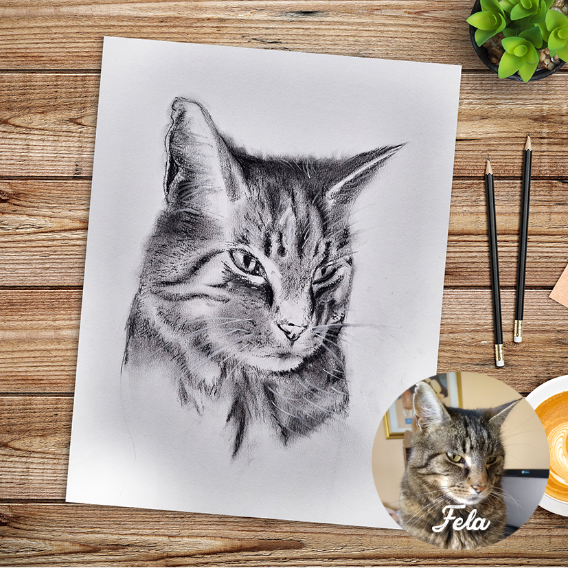 November 10, 2025Custom charcoal pet portrait, hand drawn dog or cat illustration
