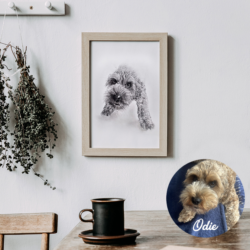 Custom hand drawn charcoal portrait created from your favourite pet photo as a reference.